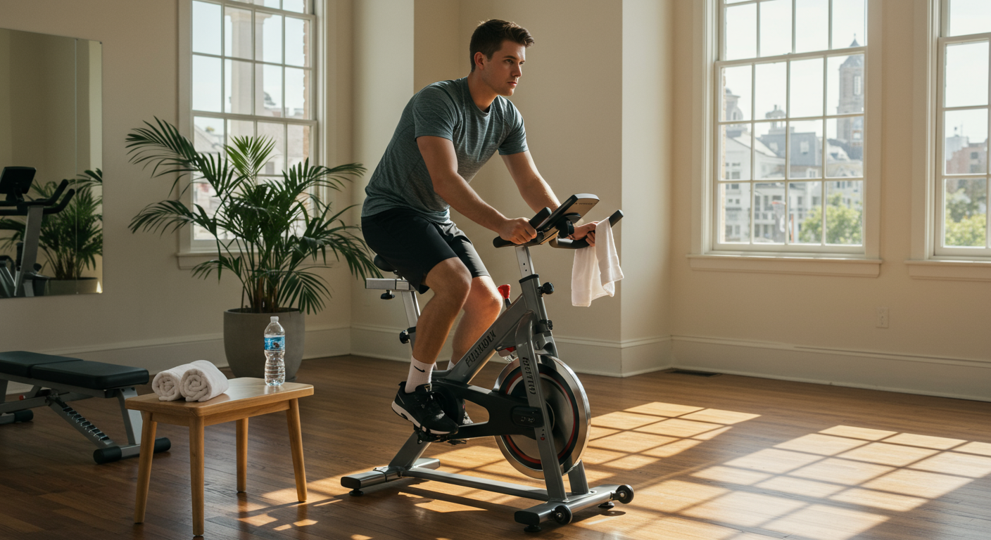 Jazda na rowerze stacjonarnym – pozwala kontrolować tętno bez obciążania kolan.
