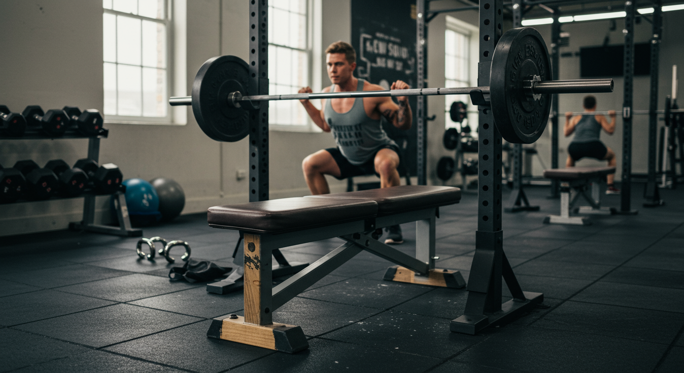 A1: Wyciskanie sztangi na ławce płaskiej (10 serii x 10 powtórzeń)